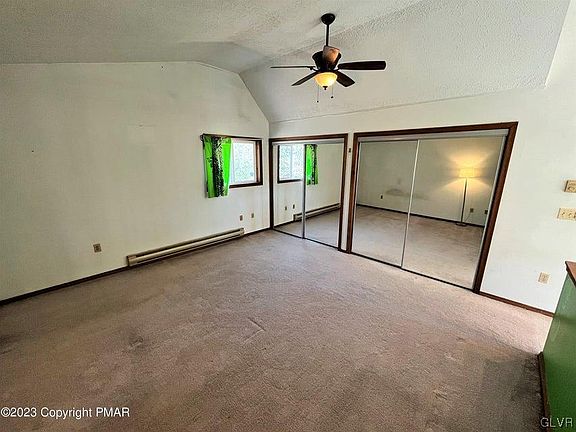 Awesome THREE STORY CHALET on a gorgeous 1.03 ACRE lot in STR-friendly Pleasant Valley West! This 3 bed/2 bath home features an impressive vaulted ceiling, 2 propane fireplaces, OPEN CONCEPT floorplan, and TONS of NATURAL LIGHT! Built-in 1 car garage! First level FAMILY ROOM! Spacious kitchen & dining area! Soak up the beauty of nature from the elevated rear deck or first floor patio! Charming primary suite features bathroom and double closets! Sprawling third story net in the vaulted ceiling living area (anchored to the beams of the home) provides a one-of-a-kind lounge experience! Walk across the street to PVW's preserved grounds at the lake! Enjoy Pleasant Valley West's tranquil lake & beach! Close to hiking, biking, rafting, Hickory Run State Park, & more! Minutes to PA-476 & I-80!