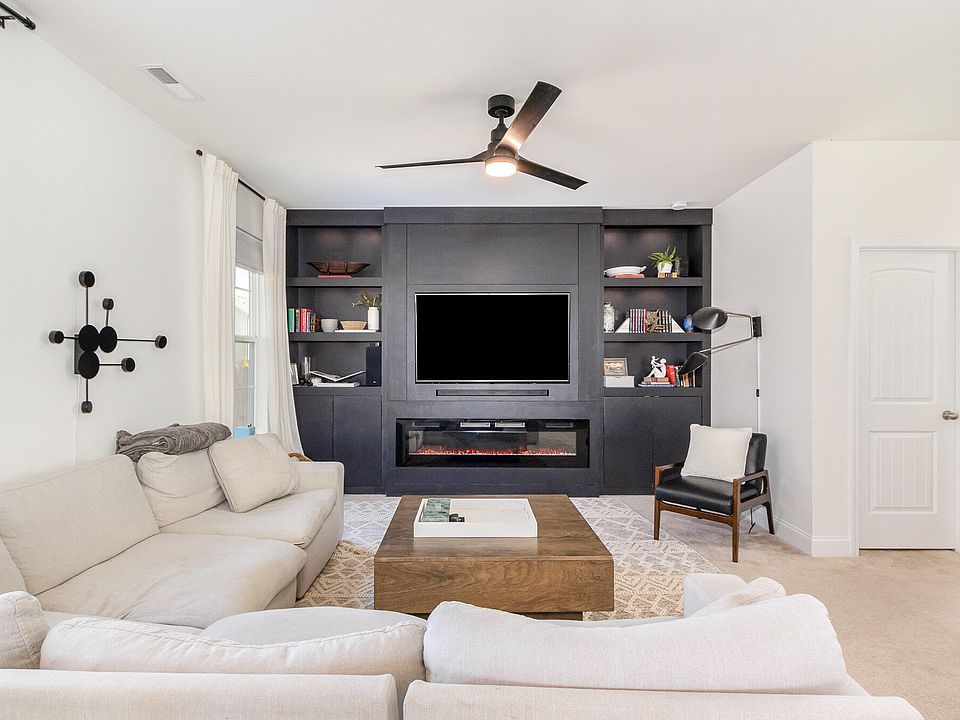 Modern & Stylish 4-Bedroom Home with High-End Finishes located less than a mile from charming Downtown Franklinton. This beautifully maintained 4-bedroom, 2.5-bath home, built in 2021, offers a perfect blend of comfort, and convenience. The open-concept living area features a gorgeous, custom black-finished, whole wall built-in, adding an elegant and sophisticated touch. The updated kitchen is designed for both function and style, with sleek and durable concrete countertops, custom backsplash and premium finishes. Stainless steel appliances and a glass front LED cabinet enhance the home's modern appeal. The spacious primary suite includes a large walk-in closet, while the oversized primary bath features a walk-in shower and dual vanities. Continuing upstairs, the large secondary bedrooms offer plenty of space for family or guests. Outside, the covered patio with a pergola provides a great shaded space for outdoor dining and entertaining. Backyard is flat and usable with good separation from neighbors. Conveniently located near everything downtown Franklinton has to offer and to the US-1 providing quick and easy access to Raleigh and surrounding areas.
