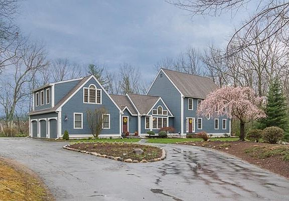 Custom built home privately set back with panoramic water views of Duck Pond. First floor master suite with sitting area, full bath, radiant heated floors and walk in closet. Large cathedral ceiling fireplace family room with sliders onto back deck and access to a four season sunroom. Family room is open into Cathedral ceiling eat in kitchen, living room and also to a hallway flowing over to the master. Sun filled eat in kitchen features exposed beams in the ceiling, hardwood floors, updated appliances, spacious island and large dining area. Mudroom is off the kitchen leading up to a bonus room above 3 car garage. Three bedrooms and a full bath are located above the cathedral ceiling family room along the main part of the home. Lower level offers plenty of potential for future expansion. House features 6 bedroom septic system. Half mile to Sargisson town beach, immediate access to Cons trails, 3 miles to Rte 495.