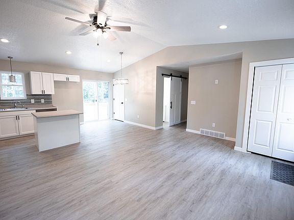 Open-concept with vaulted ceilings in the main living area. Kitchen features include: Beautiful Soft-Close White Cupboards, already plumbed for a dishwasher, a slider to the back deck, and a center island. You will also love the Large, concrete-poured crawlspace that offers a ton of clean, dry space for Storage! Beautiful Sliding Barn door on the half bathroom, Walk-in Closet in the Main Bedroom with Custom Built-Ins, Ceiling Fans in almost every room and so much more!