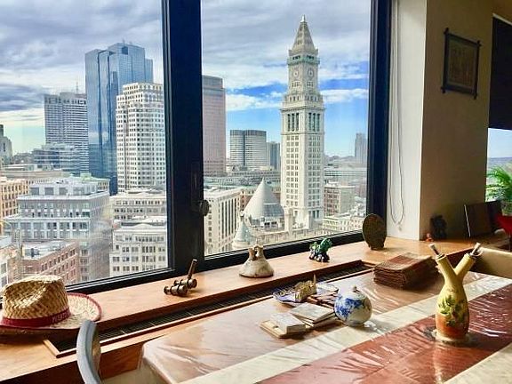A fully furnished, spacious and sunny, 878 sq ft, over-sized one-bedroom condo with breathtaking views of the Boston skyline is available, at the full service, luxury residential complex of Harbor Towers. Step out of the main entrance facing the ocean and into the Financial District for work, or an evening out in the historic North End, Theatre District, Greenway, Seaport and major transportation points (local T, bus, and commuter rail lines) are within a few mins walk. Additional building amenities include 24-hour gated security, concierge, seasonal swimming pool / lawn area, on-site management, package delivery, and external landscaping. The unit is fully furnished with two beds (spacious queen sized bed + wall bed in living room, that can function as a table when not in use), sectional sofa, chairs, flat screen TV, lamps, etc. This unit on the 22nd floor has many modern updates including solar shades, updated bathroom, stainless steel appliances. Included: Furnished, Gas, Heat & Hot Water