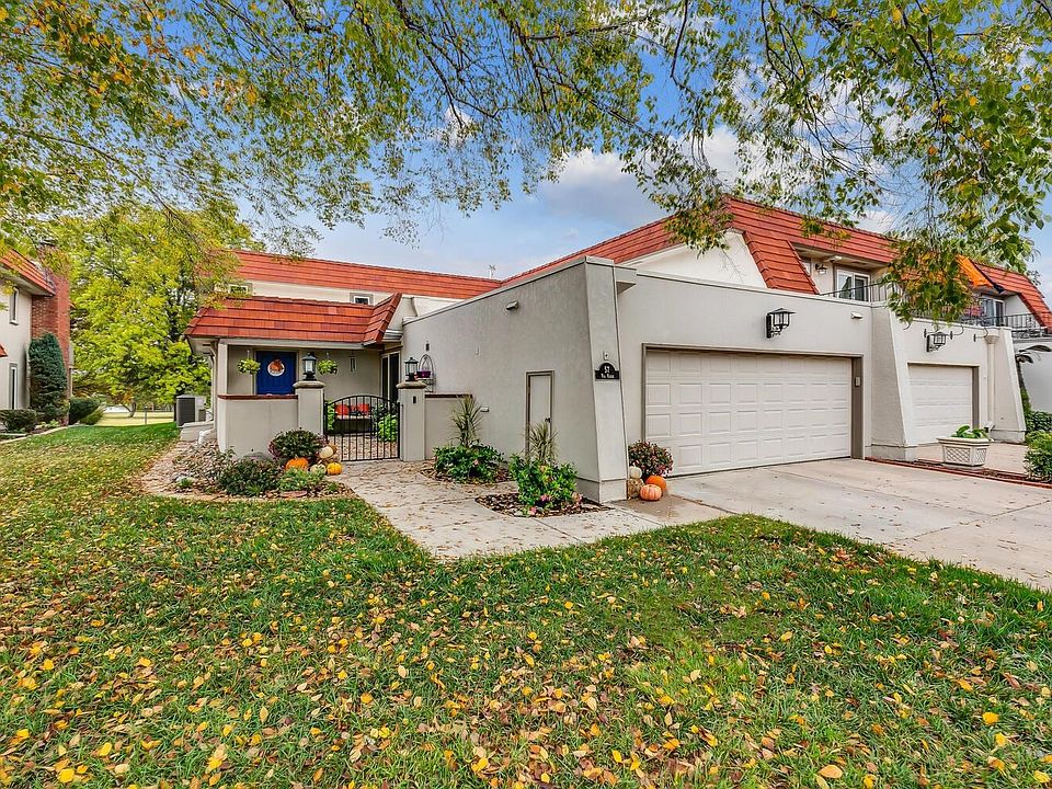 At just over 5000sqft, I do believe this is the largest Villa on the Crestview Country Club golf course! The best part? Every bit of the 5008 finished square feet has been remodeled – every single surface! And the location? A coveted end unit right smack on the golf course with gorgeous views of the course and lake. The entry has been remodeled for an open welcome while retaining the private entrance. You will love the privacy on your lower covered patio lit with café lights and featuring stained concrete floors with brick and limestone trim, but don’t forget about the sunny upper deck where you can watch the golfers and catch some rays! This 1.5 story floor plan is very rare... this is one of only two villas that has a completely open concept, with two-story beamed ceilings to maximize the view. Upon entering, you will notice the wide-plank wood floor, elegant open curved staircases, stunning great room, and have I mentioned the resort-like view?! The great room is accented by a wood-burning fireplace with blower, custom mantel and hearth seating, and upgraded light fixtures. The kitchen offers plenty of seating between the oversized island, eating bar, and hearth room for formal dining or cozy family room. Don't miss the wood-burning fireplace in the kitchen and the double walk-up pantries! The door to the double garage is off the kitchen and complimented by a wall of hooks and cubbies. Back through the kitchen, enter the laundry room with plenty of storage, then conveniently continue into the primary closet/bathroom with oversized tiled shower, separate vanities, and plenty of built-ins for clothing, linens, and other items. The primary bedroom has a built-in nook for a California king-sized bed, trimmed with shiplap, custom lights, and convenient outlets for bedside charging. Built-in storage, plenty of space for large furniture, and a sliding glass door to the covered patio complete the primary, which is also connected to the great room. Follow the decorator-trimmed curved staircase up to the lofted office. Custom, built-in dual desks with storage, a sitting area, and another big glass sliding door make for a peaceful and efficient office area. Completing the upstairs is a second primary bedroom, with walk-in closet, full bath, and heated/cooled by it's own newer HVAC unit. In the basement you will find a third wood-burning fireplace (also with blower) in the family room along with a new light fixture to separate the entertaining area from the poker/bar area. Two enormous, finished bonus rooms share a full bathroom. The exercise room has washer dryer hook-ups for a second laundry room. Or maybe you’ve always wanted a gift-wrapping room? The 485 sqft storage room is convenient, but honestly the last thing you need in THIS home is more storage! This is a rare gem that will not last on the market. Completely updated and remodeled in the last few years, an end unit on the golf course, and the exceptional and RARE open floor plan, make this Villa the best and the biggest of the bunch!
