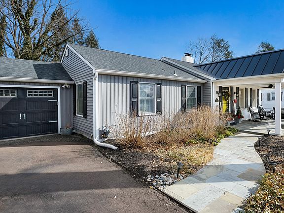 If you are looking for your "Happy Place" and the Boro lifestyle....57 East Street may just be the place for you! Yes, it IS the house with the fabulous yellow door! This updated 2-3 bedroom Ranch-style home offers some flexibility with the floor plan and has been updated with love, integrity and quality materials! In 2020 a renovation was completed that included the exterior baton board vertical siding with stacked stone accent, the roof, the bluestone covered front porch with ceiling fan, custom moldings, flooring, stunning new Kitchen and Bath that will "knock your socks off!" Also newer patio, central air and tankless water heater! This home has the "wow factor." The custom Kitchen was designed with the chef in mind offering beautiful custom painted cabinetry (some lighted and with seeded glass), Bucks County Soapstone countertops, subway tile backsplash, stainless steel appliances (replaced in last 4 years), breakfast bar (stools included), undermount lighting and more! Lovely living room with wood floors, windows with custom plantation shutters, wood-burning fireplace with bluestone surround and custom shiplap cabinetry/wall. Dining Room off the Kitchen has wood floors, custom crown molding and slider to patio and gardens. 2 bedrooms offer wood floors, ample closet space and lots of charm. Third room has been used has a bedroom (has a closet) and as an office. Could also potentially, with renovation, offer space for a main floor laundry area/mud room off the garage. The stunning full bath is a design you will not soon forget offering custom tiled floors and walls, oversized stall shower with multiple shower heads and seamless glass doors. The custom oversized vanity offers 2 sinks, Bucks County Soapstone countertop and lots of storage. Note the lovely mirrored medicine cabinets with custom framing. They thought of everything! Linen closet is in the hall. The finished basement offers Den area with built-in bar and refrigerator, laundry room with LG appliances (included) and cedar closet and half bath. In the fully-fenced rear yard you will find an inviting and spacious custom paver patio with custom lighting in knee walls and stunning perennial gardens! 1 car attached garage (12'.9" wide x 21' long) with inside access and garage door opener. Driveway parking. Convenient location to Linden Elementary School, Fanny Chapman Swim Club, the Park and the Borough Dam Youth Fishing Program. Easy access to Historic Doylestown Borough, the County Theater, library, museums, shops, restaurants, coffee houses, transportation center and more! It's better in the Boro!