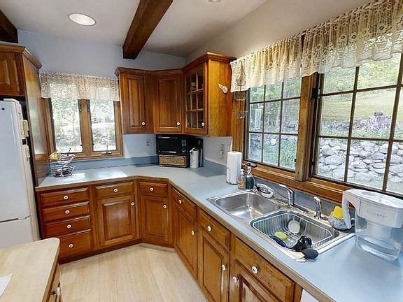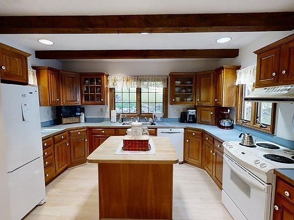 - Features: Beamed Ceilings, Window(s) - Picture, Dining Area, Kitchen Island, Breakfast Bar / Nook, Country Kitchen, Exterior Access, Open Floorplan, Recessed Lighting, Remodeled, Breezeway