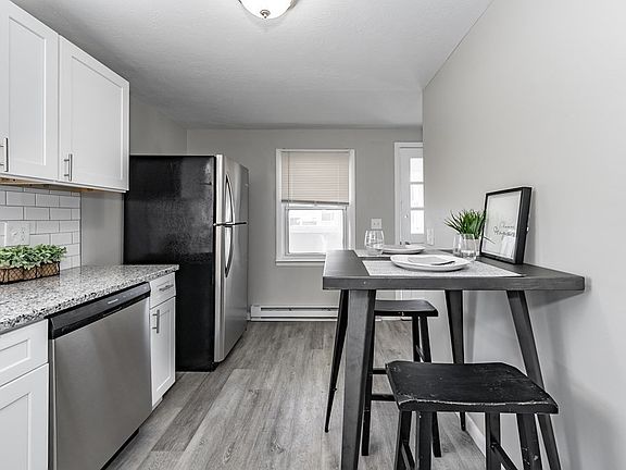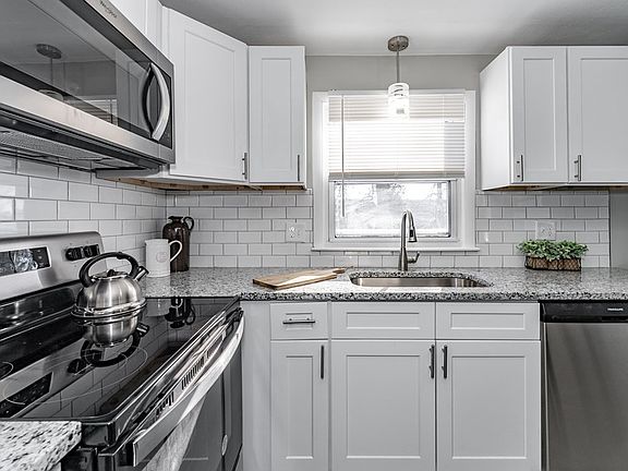 Welcome home! This ranch style home is perfect for a first time home buyer or someone looking for 1st floor living. As you walk in you will appreciate the new vinyl flooring throughout & a mixture of refinished hardwood floors in the bedrooms. This home offers 2 spacious bedrooms and an updated bathroom with tiled shower/tub. The remodeled kitchen has upgraded cabinets and granite countertops, with matching new SS appliances. The kitchen offers enough room to have a breakfast table or coffee nook. Right off the kitchen there is a mudroom that leads right to your driveway. The backyard is flat and partially fenced in with an oversized one-car detached garage. This home is centrally located on a dead end street next to shopping amenities. There have been many upgrades throughout the years including newer roof, vinyl siding, garage door, electric heat, hot water tank, and freshly painted throughout (APO)! Join me at the open house Sunday December 18th from 11-12:30pm!