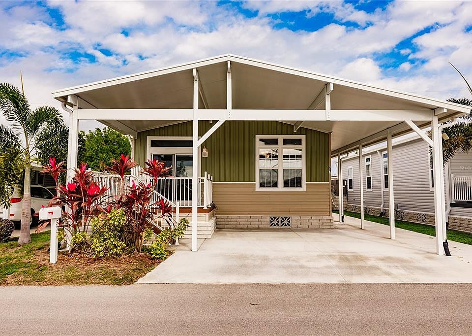 Welcome to this BEAUTIFUL 2020 Jacobsen manufactured home in TROPIC ISLES! This home features 9 foot ceilings throughout with crown molding. Open floor plan, kitchen, dining area and living room. Double pane windows, beautiful master bedroom and bath and a guest room, Nice open porch, indoor laundry and storage shed attached. Upgrades: Combo LG combo washer/dryer added with utility sink and small counter. Both bedrooms upgraded from carpet to luxury vinyl floorings. Three (3) ceiling fans added. Additional power added in master bath. Switched closet lighting added. Additional shelving in closets, under vanities, and elsewhere in the home -under/in kitchen cabinet lighting with remote and bath hardware! Tropic Isles Co-op is a 55+ resident owned WATERFRONT community very active community with something for all. Sitting on 2.5 miles of waterfront land on Terra Ceia Bay. Direct access to the Gulf of Mexico! Easy access to 3 airports and beautiful sugar sand beaches. Community offers 2 meeting areas: the Auditorium and the "Yacht Club". Plus, temperature-controlled pool, spa, library, exercise room, game room, shuffleboard, full service marina (bait, snacks, shop and fuel). Maintenance fee is $258 (covers: water, sewer, garbage and recycling collection, park management and access to all amenities). Come enjoy our slice of paradise. Schedule your private showing today! Bedroom Closet Type: Walk-in Closet (Primary Bedroom).