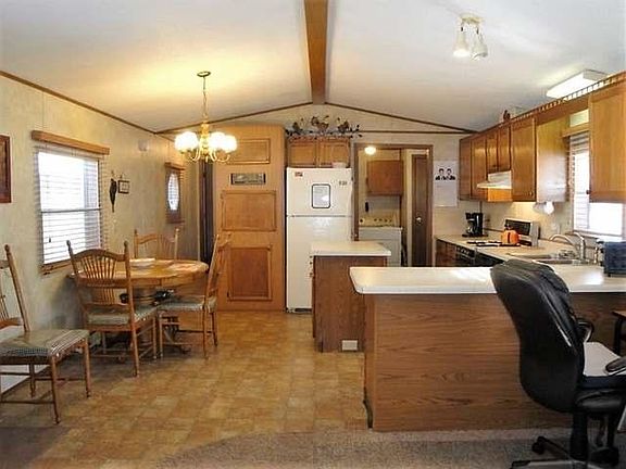 This 2 bedroom, 2 bath home in Edgewater Homes is located on the shore of Thunder Lake of the Rhinelander Chain & offers a split bedroom layout & comfortable living for those 55 & older. Vinyl siding & newer roof shingles on the home & garage provide carefree maintenance. There are 2 decks (1 is newer), & a pier, to enjoy the great outdoors. A blacktop driveway leads to the oversized, 1-car garage, & the home has nice landscaping, central air & updated carpet & vinyl floors.