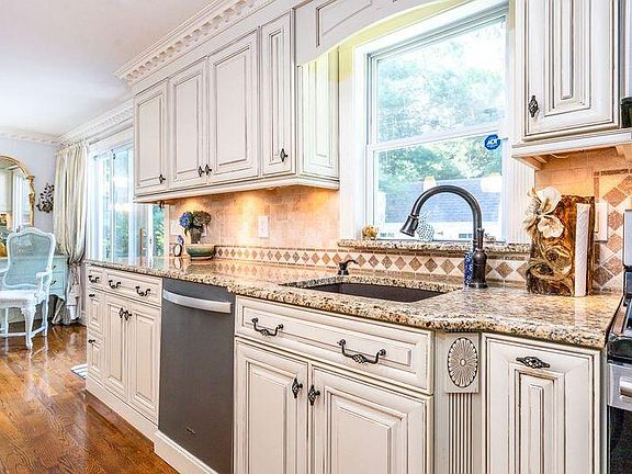 Spacious colonial set on a beautifully treed level lot with privacy all around. Circular driveway leads you to the front entrance of the home with hardwood floors throughout, updated kitchen with large island, open concept living dining area, full bath, and separate office space as it is being used now. The current owners use the breezeway for an art studio, as it has perfect natural light. Upstairs are three generously sized bedrooms, 2 full baths and ample closet space. Basement is finished with another full bath, bar, and laundry area. Utilities include newer Rinnai HW heater, irrigation system, gas furnace, Central AC and newer kitchen appliances. There is a large shed in the private and shaded backyard for all your yard tools, etc. This is a wonderful home which will check all your boxes!