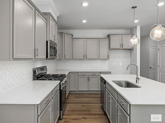 Introducing the Graham Design. 3 bedrooms, 2.5 Baths, 1-car garage, and a 12X8 covered patio! The stylish kitchen has a generous amount of counter space including a gas range with the microwave mounted above and a large island with sink and dishwasher. Easy-to-maintain EVP flooring spans the entire first floor, making cleaning easy. This townhome design utilizes every opportunity for storage including the closet underneath the stairs, and a large pantry. Primary bath features a shower, and dual vanities separated offering a custom feel. The secondary bathroom is spacious and includes a dual sink. Secondary bedrooms are sized well and separated from the primary bedroom offering privacy. The storage continues with a spacious laundry room and two additional closets in the hallway. The HOA covers lawn care, power washing, roof maintenance, and more, ensuring a low-maintenance lifestyle. Welcome home!