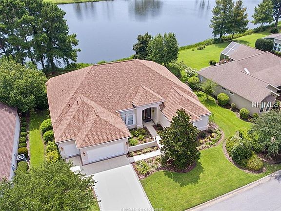 PRICE ADJUSTMENT! Elegant Del Webb Estate Marion/Webster on a fabulous panoramic lagoon view! 3 bedrms or use one as den/office, 2.5 baths, formal Liv. Rm/Din.Rm combo, Great Rm. & Master bedrm that all look out onto gorgeous water views.All new Hickory wide plank floors in main rooms, new HVAC 2 years ago, new architect.roof in 2012. Kitchen w/Granite,Hickory floors,large breakfast area, new dishw. HUGE Laundry Rm w/many cabinets exits to 2 CAR PLUS GOLF CART GARAGE. Spacious Master Ste. with Bidet plus toilette, tub & separate shower, Bays & Plantation shutters.New landscaping & irrigation box. MORE!! Wants an offer