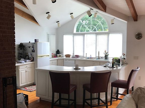 One floor house with basement, open floor plan, cathedral ceiling, floor to ceiling windows, large kitchen, large family room with fireplace, hardwood floors, bedrooms have carpet. Close to the water with private beach. No more than 2 people allowed to live in the house. 1 cat allowed Tenant pays for trash, electricity, water, mowing lawn, leaf clean up, snow removal