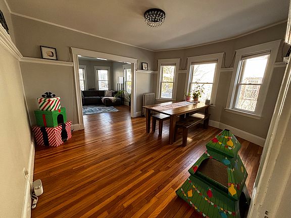 This high-quality apartment features two bedrooms and one bathroom, with hardwood floors throughout. It includes in-unit laundry and stainless steel appliances. The property offers one garage parking spot and two tandem off-street parking spots. Outdoor amenities include a shared backyard with a garden, a private rear porch, and a shared front porch. The apartment was updated a few years ago and showcases vinyl siding, new composite decking, fresh paint throughout, and a beautifully tiled bathroom. Basement storage available as well! Pets are negotiable on a case by case basis. It is situated just under one mile from both the Ball and Gilman Square stops, and is steps away from multiple dining options and Assembly Row, with quick access to Route 93. Owner Pays for water. Tenant responsible for Gas and Electric bills. No Smoking in unit. No candles left unattended. First, Security and one month's rent Fee due at lease signing.