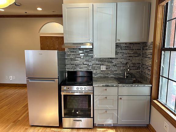 Available Now! Beautiful studio apartment with marble bathroom, galley kitchen (granite countertop, tall cabinets, & a garbage disposal), newly sanded hardwood floors, high ceilings (9 feet!), beautiful decorative fireplace, crown moldings/wooden baseboards throughout, and a private DECK! Huge common roof deck & common washer/dryer in building.