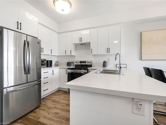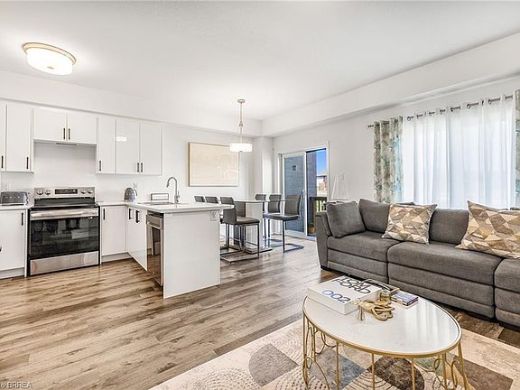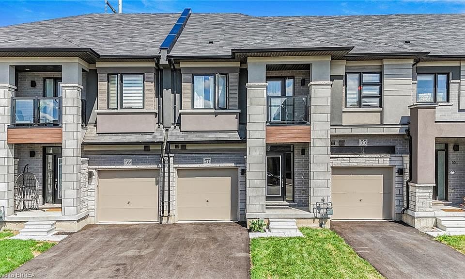 Welcome to this well-maintained, like-new townhome in Paris, showcasing over $20,000 in upgrades and thoughtfully designed for modern living. Step inside and be greeted by 9-foot ceilings on the open concept main floor, where an abundance of natural light fills the open spaces. The eat-in kitchen is the heart of the home, featuring upgraded white flat-panel cabinetry, stainless steel appliances, and a functional layout that flows seamlessly into the dining area. From here, sliding doors lead to your back deck, the perfect spot for relaxing or entertaining. A main-floor powder room adds convenience for guests, while engineered hardwood flooring throughout the main level and upper hallway adds warmth and style. The beautiful staircase with modern metal pickets leads you upstairs, where the spacious primary suite offers a relaxing retreat complete with a walk-in closet and a spa-like ensuite featuring a glass shower and separate soaker tub. Two additional bedrooms share this level, one with its own private balcony, along with the practicality of second-floor laundry. The unfinished basement is a blank canvas awaiting your finishing touches, providing the opportunity to add even more living space to suit your family’s needs. Perfectly located, this home is just minutes from Highway 403, the Brant Sports Complex, schools, restaurants, and shopping, offering both comfort and convenience in one desirable package. Don't miss the opportunity to call this your forever home, book your showing today!