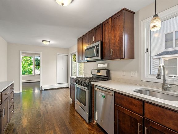 Spacious two family with three-level 4 bed on the upper levels plus a rented 1 bed on the lower level. The tri-level owner's unit features 4 large bedrooms with 3.5 bathrooms. Ready for occupancy with refinished dark oak floors and new carpet, this unit has an updated kitchen that includes stainless steel appliances and granite countertops. The lower level rental unit boasts a modern kitchen with a large island, granite countertops, stainless appliances and has an open floor plan to the living room. Laundry machines are located in the common space for both units to enjoy. Each unit has their own private deck and there is a large fenced in yard for outdoor enjoyment. One off street driveway parking plus plenty of street parking on this dead end street. This home is registered as a 2 family, but shares one common heating system (approx. 2 year old heating system).