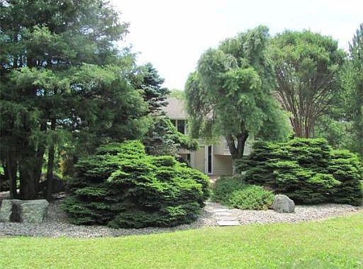 Exceptional 7 room/3 bedroom/2 bath 2000+ sq. ft. contemporary home situated on a professionally landscaped 1.36 acre home site. This quality built home features an open floor plan with cathedral ceilings in the fireplaced living room, dining room & 2 story foyer. The eat in kitchen features custom cabinets with granite counters, stainless steel appliances, pantry and overlooks the private grounds. There are 2 decks accessed from the dining room & master bedroom. A master suite with a full bath, 2 additional bedrooms and a 2nd bath complete the main living level. The lower level features a game room/family room with a fireplace and sliders to a large patio & a laundry room. Some of the recent renovations are new Anderson windows, cedar impression siding, a 50 year architectural roof and central air. Set back off the road, the grounds feature brick & granite walkways, stonewalls, expansive lawn and a new driveway. Title V compliant. Excellent highway access.