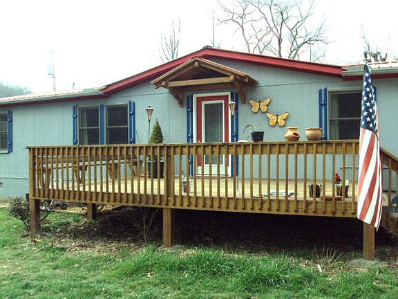 Nice upgrades to this manufacture home on a flat lot bordered by small stream. Great location and close to Scotts Creek School. Metal roof, large deck, carport, storage building and covered porch make this a great property. Remodeled baths and kitchen too.