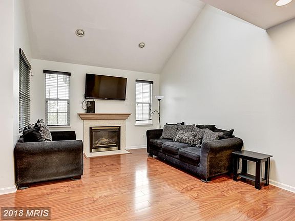 Lovely penthouse condo featuring high vaulted ceilings, carpet, recessed lighting, skylight, and gas fireplace. Kitchen boasts ample storage, 42" cabinetry, and newly purchased Kenmore stainless steel appliances. Newly purchased hot water heater.Master bedroom suite with double closets and soaking tub. Upper level loft, landscaped grounds, & rear balcony. Close proximity to I-795,I-695, & I-95.