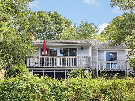 Ever dreamed of living in a treehouse, an easy carefree existence? Imagine it in this charming Cape Cod getaway where you can almost cast your fishing rod from a chair on your deck! Situated so close to everything, but perched on the hillside, tucked in the trees, hides this waterfront beach bungalow. From the first look in the door, you'll experience endless water views, a town landing below, and spectacular private sunsets. Out the back door with the kayaks and into Kelley's Bay in 2 minutes to spend the day exploring the inlets and estuaries along Bass River. Keep your boat around the cove at Mayfair boat yard and drop the family off at the town landing next to the house. Spend the day fishing in Nantucket Sound, or take a quiet afternoon ride to The Shanty for drinks, and be home in a jiffy. This Coastal cutie has been renovated with modern kitchen and baths, gleaming hardwood floors, first floor primary bedroom, tons of living space and a private sanctuary location.