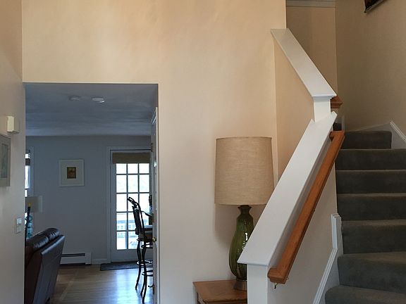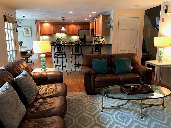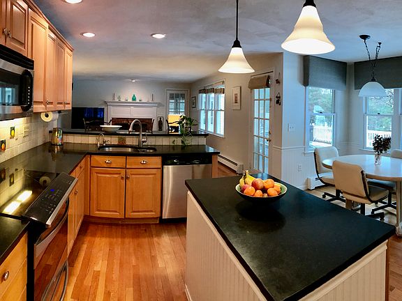The best of both worlds in a desirable neighborhood. Enjoy living in a beautifully landscaped open contemporary colonial; its a gorgeous private location away from traffic and noise yet within a family friendly neighborhood. It's a nature lover's paradise with privacy, wetland views, and direct access to miles of adjacent conservation land trails. Nestled in a cul-de-sac neighborhood near the high school, it boasts four generous bedrooms, featuring a Master BR with vaulted ceiling, en-suite bath with separate shower, large tub and walk-in closet, and another bedroom that's 24' x 24' with a 2nd walk-in closet. The kitchen has maple cabinets, an island, and stone counter-tops and opens to the family room with a fireplace -wood stove. Also included are the 2-story entry, Office/Library with French doors, Dining Room, 3-Season Sun Room, hardwood floors, and a Billiard Room in the Finished Basement. Entertain and enjoy the outdoors with the two tier 34'x23' deck and 7-person hot tub.