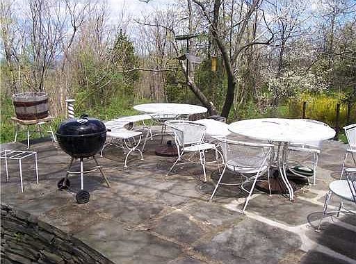 This home boasts a somewhat unique floor plan with a very large eat-in kitchen complete with brick masonry fireplace big enough to cook in! There is a large formal dining room and formal living room/family room with another fireplace. There is a third fireplace in the walk-out basement which could be finished into a lovely family room. The kitchen leads out to a beautiful blue stone slate patio overlooking 4+ Acres making for a very private setting in a wonderful family neighborhood. This home needs some updating but has great bones with a brand new roof, septic system, 200A Electric service & furnace! Located a relatively short drive to the Metro-North Train Station about a 1 hour to NYC!
