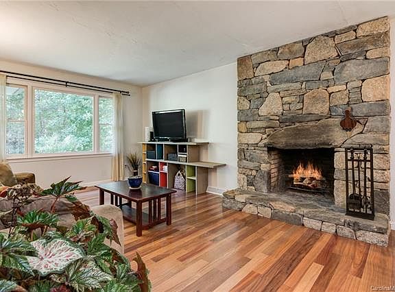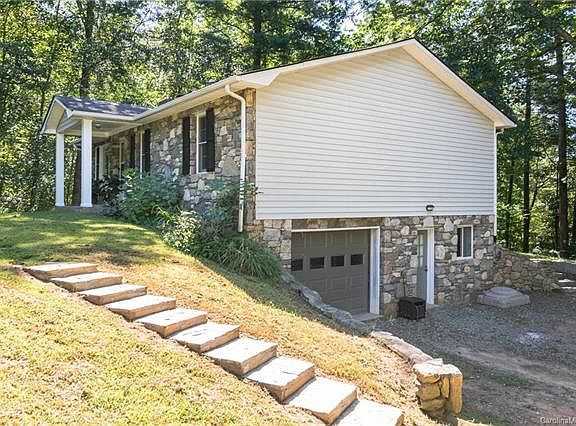 What a great value! Quiet, end of road privacy, on this 1994 one level home over basement, with a detached garage. Great yard, front and back. Brazilian Teak Wood flooring throughout main living space, beautiful custom stonework in living room and exterior. Seller upgrades include: wood flooring, carpet bedrooms, tile bathrooms and fireplace stone is "Diamond Cut" for seamless finish to meet with flooring. Deep fireplace in living room, wood burning. Lots of natural light throughout the house keeps it bright and airy year round! Rear deck off kitchen. Lush green area of trees surrounding property. Located in North / West Asheville. 15 minute drive from downtown. 3 bedrooms, 2 baths. Heated bonus room in basement. Large basement which is also a 1 car garage. Laundry area in basement with utility sink added. Attached garage- seller upgraded to a complete new garage door system and track. Separate detached 1 car garage currently being used as a music studio.