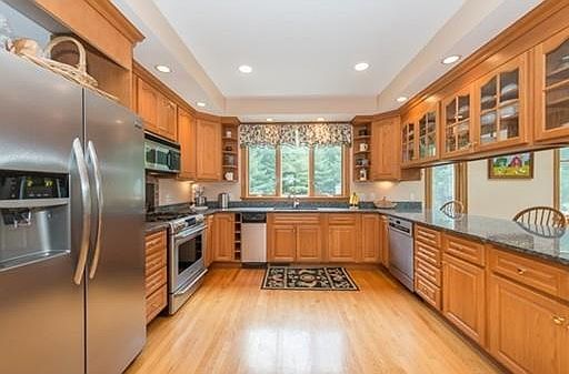Private 17.4 acres adjacent to 100+ acres of conserv land, with trails to explore on foot or horseback. Property includes riding arena, 2-stall run-in shed and paddock. Space could easily be filled with pool, tennis court, garage for car collection as well. This striking 4,858 sf contemp colonial is at the end of one of the most desirable cul-de-sacs in town. Hickory Ln trail connects to BTA and soon-to-be Boxford Commons. Hdwd flrs thru-out 1st flr, KIT has granite counters, custom cabinets, new stnless appl, FP and skylights. LR has floor to ceiling stone hearth, dry bar and wall of windows looking out to sunroom and beyond. 2 mstr bdrm suites, one up and one down, w/walk-in closets and full bths, suitable for in-laws or guests. Lg office w/ french drs, laundry rm and half bth complete 1st floor. On the 2nd flr, you will find a spacious great rm, the remaining bdrms and 2 full bths. Potential to add addtl ~4000 sf in attic and basement. CA, C-vac, security, new: roof, driveway, furnace and hot wtr htr