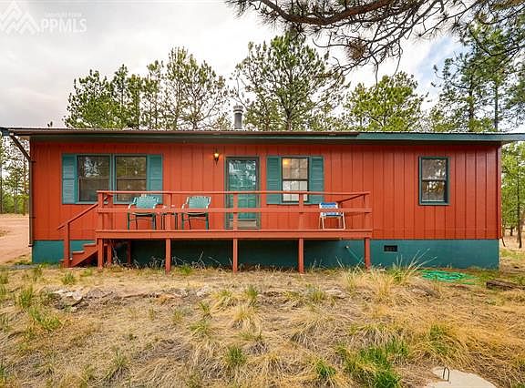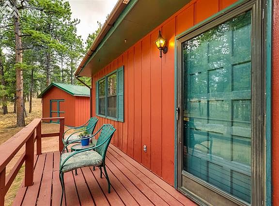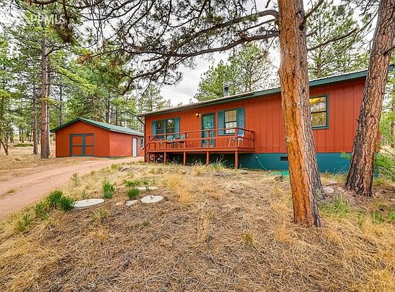 Charming home nestled on a quiet, two acre treed lot backing to Pike National Forest. Enjoy the sounds and views of nature as you relax on the front porch or back patio. A large, detached, heated garage adds storage and room for projects. The floor plan in this home is open, bright and functional. Tons of natural light pours in throughout the windows in the living room and kitchen as well as the adjoining dining room. You will love how cozy and inviting this home is. Schedule your showing before it's gone!