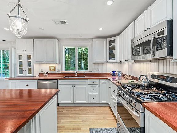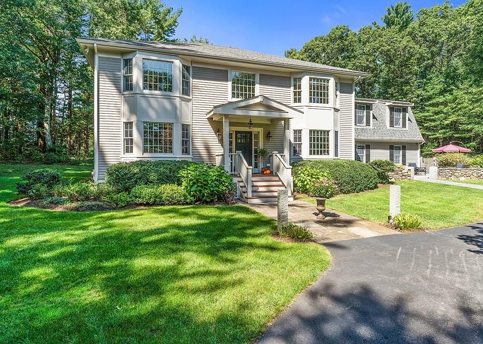 Stunning beautifully maintained two-story home situated on a private 2.76 acre lot. From the sun filled open-concept kitchen and living space, to the professionally landscaped yard with inground pool and hot tub, there is plenty of room for all to enjoy. Features include mahogany kitchen counters, stainless steel appliances, wood floors throughout, master bedroom with bath walk in closet and slider to balcony, spacious bedrooms, front and backyard stone patios, custom built ins, laundry room, cedar closet, circular driveway and more. Elegant yet comfortable! Open House April 14 12-3