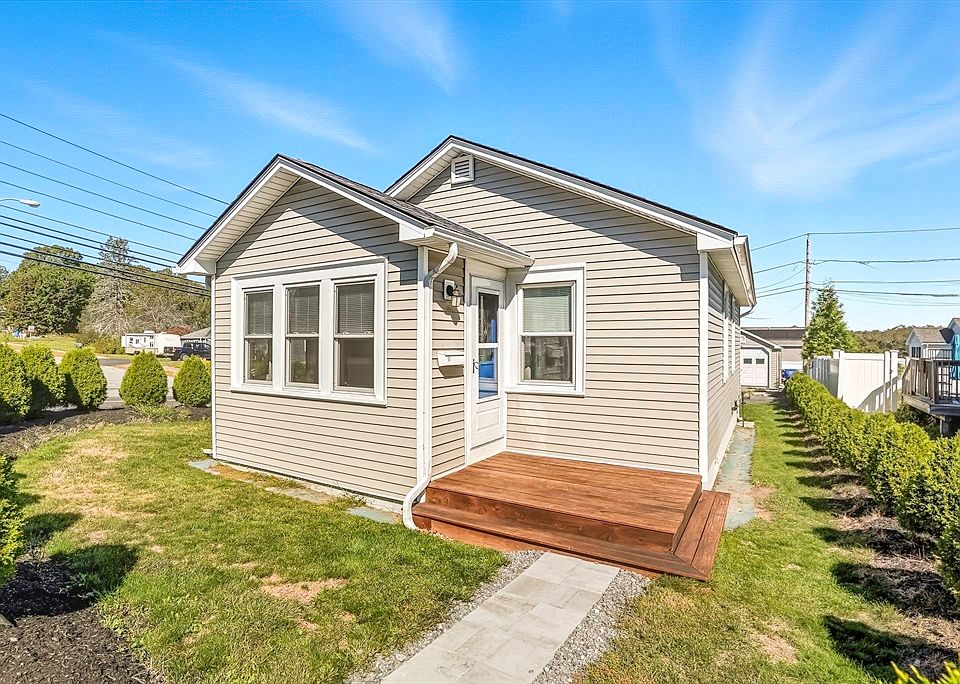 "Highest and Best" offers be submitted by 7:00 PM today, Monday, October 5th." Charming, well-maintained, affordable ranch. This move-in-ready home boasts engineered hardwood floors throughout, features 2 bedrooms and an open kitchen/living area with granite countertops and included appliances. The bathroom includes a shower stall and tile flooring. A professionally waterproofed, partially finished basement with tile flooring includes a stackable washer/dryer, upgraded boiler, electric heater, and a sump pump with battery backup—perfect for a home office, gym, or storage, with extra space in the crawl space. Outside, a generous corner lot offers a detached storage bay, a large deck off the kitchen, and ample off-street parking. The low-maintenance exterior and no condo fees make this an ideal starter home or investment. Conveniently located with an efficient design, this upgraded home is perfect for easy living. Don’t miss out!