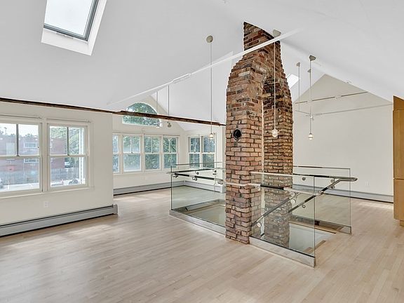 Beautiful three-bedroom home located in the heart of Cambridge features sleek contemporary design, expansive open floor plan, cathedral ceilings, skylights, frameless tempered glass railings, and abundant natural light. Modern kitchen offers 36” Frigidaire Professional stove, double-drawer dishwasher, stainless appliances, and transom window. Large, modern spa bath features double sink vanity, enclosed steam room shower, and Kohler soaking tub with jets. Primary bedroom offers large walk-in closet. Home offers living room with gas fireplace, modern half bath, built-in bookshelves, and central AC. Garden level offers separate one-bedroom unit with private entrance, open floor plan, kitchenette, and full bath. Professionally landscaped fenced yard is a lush oasis with mature plantings, garden area, and private patio. Cement side-by-side driveway offers off-street parking for two. Steps to vibrant Harvard Square and Inman Square, this is a walker’s paradise with a walk score of 92!