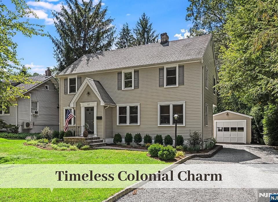 Classic Colonial, appointed with charming Shuttered Windows, a Brick Landing with Iron Rail, and Fluted Pilasters, is nestled in a quiet, inviting neighborhood just moments from the Nature Preserve and Downtown District. The Living Room exudes warmth with original Oak Trim, Brick Fireplace, gleaming Hardwood Floors, and Recessed Lighting. Adjacent Double French Doors open to a cozy Home Office or Den with its own fireplace and ceiling fan, perfect for relaxing or working from home. The Formal Dining Room flows seamlessly into a sunlit, spacious Eat-In Kitchen featuring a Vaulted Ceiling, Pro Stainless Oven, Built-In Micro, Twin Pantries, & Desk Nook. A symmetrical Sink Wall with abundant counters overlooks the rear yard, while a Bluestone Patio, framed by Privacy Hedges, invites Al Fresco Dining. A glass door leads to a Covered Porch w easy access to the garage and driveway. A Full Bath completes 1st Floor. Upstairs, the oversized Primary Suite features a Vaulted Ceiling, Seating Area, & Twin Closets, along with two additional Bedrooms, a crisp Full Hall Bath, convenient second-floor laundry, and a large Linen Closet. The lower level spans the full footprint, featuring high ceilings, flexible rooms ready for a recreation room and Home Gym, plus a workshop and storage. New, pro landscaping. Oversized detached garage with new roof. Top-ranked Blue Ribbon Schools.