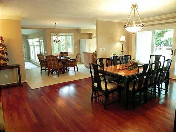 Gorgeous executive ranch much bigger than it appears!You will be thrilled & surprised at the open floor plan and all the recent updates!Cathedral ceiling family room with gas fireplace!Banquet-size dining room w new Brazilian cherry hardwood floors!Updated eat-in kitchen w new high-tech range hood and corner sink.Entertainment size living room also with Brazilian cherry floors.Both baths are brand new!2400sf basement w walk-out stairs.Wonderful closet space throughout the home!Multiple porches & patios overlooking a private wooded and fenced yard.Wired for back-up generator.Take virtual tour!!