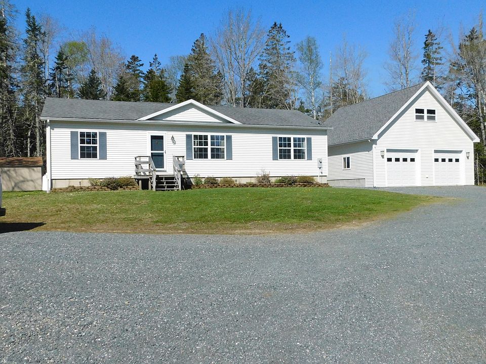 Spotless 3 bedroom home in like new condition across the street from Jellison Cove. There is a heated 2 car garage and spacious shop with garage door tall enough for an RV to go through. Wood floors in the upstairs living areas, granite counter tops and like new appliances. The basement has been finished with wainscoting, carpet floors, a ba, propane fireplace and separate office space. A wonderful home in a great location. There are numerous walking options with many scenic ocean and mountain vistas. All within 2 miles of Hancock Point with deep water mooring, tennis courts and more scenic places to walk or bike.The large out building would allow for RV or large boat storage and could be a great workshop for a tradesman or fisherman. All set on a large country lot.