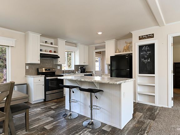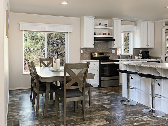 This hidden gem on 7.6 acres nestled among the pines of Grimes Creek area awaits you! Incredible views from the multiple levels of property with year round access & maintained roads. Enjoy abundant wildlife including elk, deer, & turkeys. New light & bright modern Clayton home w/ 3 bedroom & 2 bathrooms sits on a foundation You’ll find plenty of windows to provide an open and airy feeling. The kitchen features a breakfast bar island, dining area & handy access to storage in the walk-in utility room. Large master bedroom with connected bath has both dual vanities & soaker tub! The property has a septic with separate septic/power at the top level of the property where someone can live/camp in an RV in their own space. No HOA or CC&Rs! Huge 4 bay shop & fenced area for animals, 2 seasonal creeks, quad & walking trail on property. 30 minutes from Lucky Peak Marina & 45 minutes to the Boise airport. If you are looking to get away from it all part time or full time you can't beat the panoramic views. Move in ready!