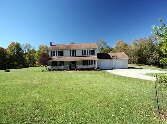 Wend your way up the winding drive to your completely private home in the middle of almost 40 acres in the Upper Delaware Catskills. This property is all about seclusion, quiet, and natural beauty. The large lawn is lush, the adjoining fields yield wildflowers and blackberries, and the woods harbor deer and wild turkeys. The 2,288-sq.-ft. home was built in 2002 and it offers a spacious entry foyer, large living room, formal dining room, kitchen with dining area, and a half bath on the first floor; 3 bedrooms, 2 full baths (one in the master suite) and an office on the second floor. A farmer's front porch and a large deck provide easy outdoor living. Two-car garage and full, dry basement. Big river valley views are possible with a little tree trimming, and paths throughout the property are perfect for nature walks, snowshoeing/skiing, or quadding. Close to Callicoon and the Delaware River.