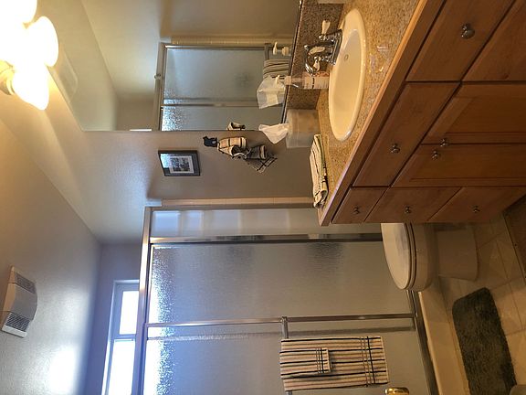Comfortable and inviting... Welcome home. This home is bright and sunny and has a wonderful floorplan with 3 of the bedrooms, a full bath and laundry area located downstairs. There is also access to a large deck and the landscaped back yard, featuring well established trees, from this floor. Enjoy a BBQ with family and friends as well as the beautiful views. The upstairs features a 'great room' with raised ceilings, a dining room with a sliding glass door that opens to a spacious deck. Observe the fabulous sunsets and the Alpenglow, not to mention the 4th of July fireworks from this great vantage point. And yes! There are lake views! The kitchen is well appointed and room for many cooks. A guest bath is located off of the living room. The main bedroom is also on the upper level, it is spacious with a walk in closet, an en-suite bathroom with a jacuzzi tub, double vanity and a separate shower. This home is ready for new owners. It will not last long. Call your agent today!