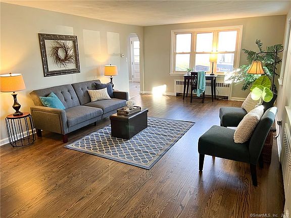 This charming Ranch, with its nostalgic covered front porch, is now ready for you! Beautiful, warm, stained hardwood flooring throughout the home is offset by the freshly painted, cool, neutral-colored walls. The large Living Room features a cozy propane gas log insert for wintertime ambiance, a galley style Kitchen offering an eat-in Dining area with tons of natural light, and 3 spacious Bedrooms to be utilized as your lifestyle requires. The expansive yard is perfect for entertaining, which you can enjoy more, knowing the architectural roof, vinyl windows, newer boiler, and new walkway, are already done. Benefit from all that New Britain has to offera summertime concert at Walnut Hill Park, a stroll across the stunning Beehive Bridge, viewing artwork at the New Britain Museum of Art, or gathering at one of the many local craft breweries. Conveniently located near shopping, parks, medical facilities, and highways Rt 84, Rt 72, and Rt 9. Come see where youll next be at home!