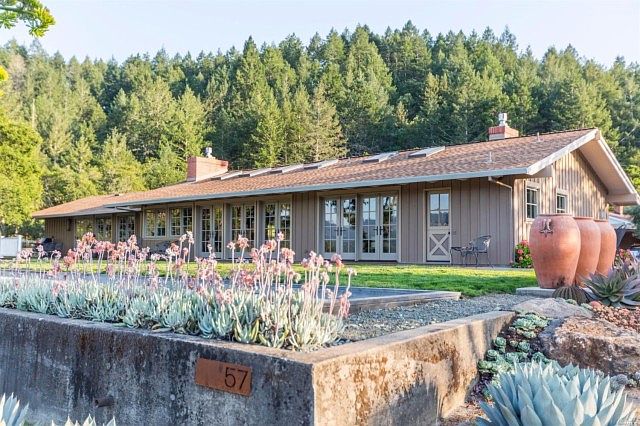 The views are just amazing. This hillside home has been meticulously remodeled and updated with craftsmanship, attention to detail, and a bit of whimsy by artist/designer owners. Open beam ceilings. Seven sets of french doors draw your attention to the unique setting and stunning vistas. 40 Mission olive trees sited on terraces using local fieldstone. Own a piece of Calistoga history while relaxing and/or entertaining in style.