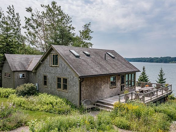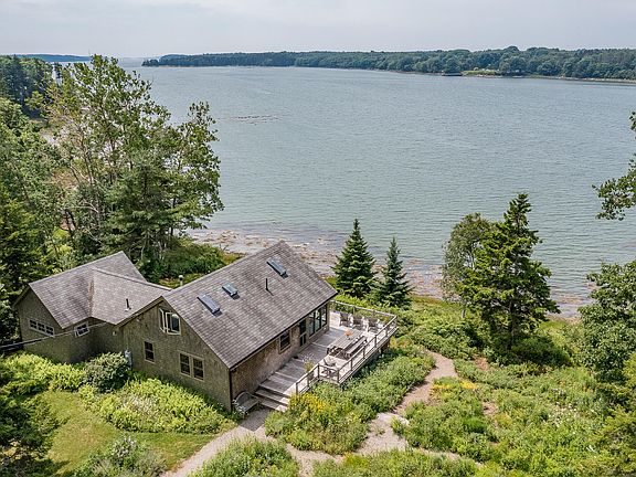 Beautifully appointed Cove Cottage is located down a winding country lane and nestled on Broad Cove. Meticulously renovated with an eye for function and serenity, the cottage offers sweeping water views, refreshing sea breezes, and a front-row seat for bird-watching. Step into the bright, open-plan living space and be transported by the natural setting and lovely views in every direction. Large windows and operable skylights flood the house with magical light and air. A kitchen custom-designed for cooks and bakers features a marble-topped island positioned to take in the expansive water view. The adjoining living room and cove-side sunporch offer many options for gathering, eating, and relaxing. Also on the first floor is a private, spacious primary suite, which includes a vaulted ceiling, direct access to its own private coveside deck, and one of the home's two updated full baths with a walk-in shower and modern fixtures. Upstairs features a half-bath and two rooms outfitted for sleeping which include custom cabinetry for storage and display. There is a hall closet on this floor as well as ample closet space on both the first floor and underneath the deck. Outside, enjoy the large, wrap-around deck perched above a lush, low-maintenance, native-plant pollinator garden or unwind in the recently built ''bunkie'', positioned to take in both garden and long water views, used for quiet time and as extra sleeping space. This unique cove-side gem is conveniently located with desirable proximity to several cultural attractions and the shops, restaurants, and amenities of Midcoast Maine!