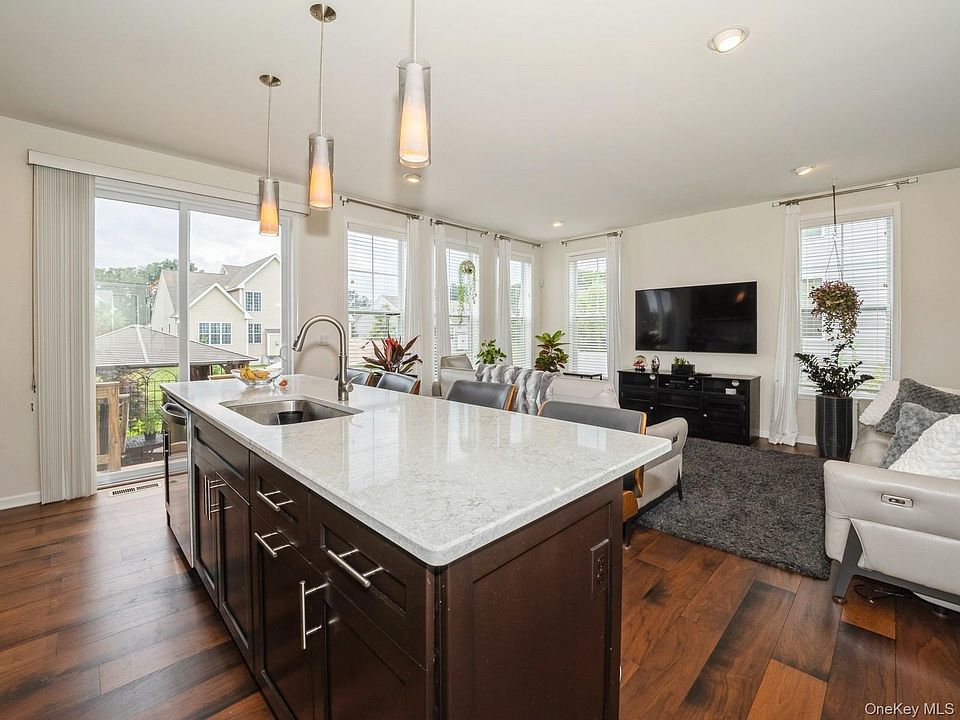 Designer-inspired townhome with top quality finishes in highly sought after Hopewell Glen! This meticulously maintained home is packed with top-of-the-line features you must see in person to fully appreciate. Every upgrade has been thoughtfully hand-picked by this seller when purchased direct from builder, from lavish kitchen boasting a center island, gorgeous quartz countertops, top of the line appliances, and exquisite rich dark cabinetry. The main level welcomes you with rich wide board flooring, soaring 9’ ceilings, recessed lighting. The open floor plan flows effortlessly from the sophisticated dining room to the inviting living room and chef’s kitchen, with sliding doors to the elegant patio. Completing this level is a main floor office, powder room & access to garage. The Bedroom level offers comfort, privacy and space! The luxurious primary suite is a true retreat, featuring a cathedral ceiling, walk-in closet with built-ins, and a spa-like ensuite bathroom with gorgeous sleek oversized shower. Two additional bedrooms on this level are beautifully appointed, each with its own unique charm. The versatile lower level offers even more beautiful space! This home has a lovingly designed tranquil outdoor space for planting, entertaining or relaxing. Enjoy resort-like lifestyle at Hopewell Glen's clubhouse, pool, tennis and basketball courts, and a fitness center. Enjoy walks on the nearby Dutchess Rail Trail running alongside the community too!