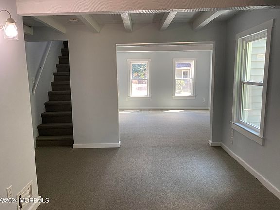 Enjoy all that this charming 2 bedroom, 1.5 bath home has to offer in the heart of Red Bank. Located 2 blocks to the downtown area, this duplex has so much charm with brick entryway, beamed ceilings, nice newer carpets & freshly painted throughout. Nice size living and bedrooms with good closet space and vaulted kitchen with stackable laundry, ample cabinetry & access to enclosed large back patio/yard area. There are 2 off street parking spots in the back lot & some additional storage in the basement. Neutral carpet throughout and newer windows & roof. Close proximity to schools, downtown shopping and nightlife, NYC transportation via bus, train or quick trip to the ferry & top rated beaches within minutes. Enjoy all this town and home has to offer. No smoking. No pets.