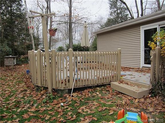 Family room with wood ceiling and wood floor and fireplace and sliders to new trex deck overlooking private back yard! Master bedroom on main floor has been divided into 2 rooms with a wall that can be taken down without causing any damage. Full baths on first and second floors- first has new vanity; 2nd has Jacuzzi and a sky light. full basement with laundry is unfinished with hookups for a generator. New counters in eatin kitchen!