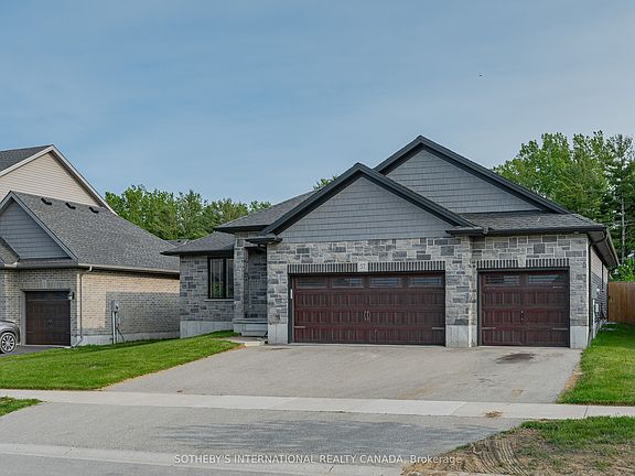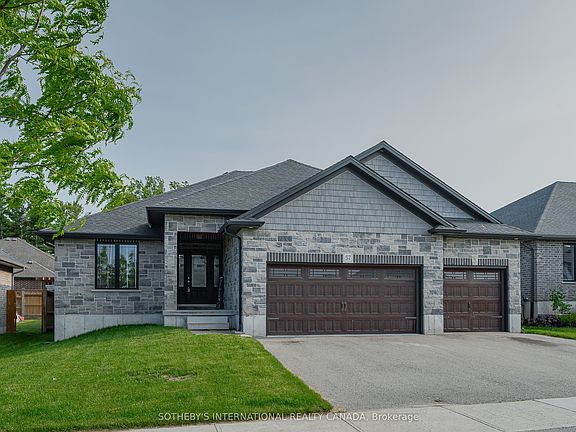 Welcome to 57 Lock Street in the charming town of Innerkip. Be impressed by this sprawling bungalow built by Hunt Homes quietly situated in a family friendly neighbourhood. Offering over 1,800 of beautifully finished living space and a three car garage, this home is loaded with upgrades- refined design and timeless appeal throughout. An open concept main floor features the living room with high ceilings and a gas fireplace to create the perfect ambiance for your guests. The light and airy kitchen overlooks the dining and living area- perfect when hosting family and friends. A kitchen island, granite counter tops throughout, glass sliding doors to the back deck and main level laundry makes this home suitable for all of your family's needs. The spacious primary bedroom is located on the east wing of the home for added privacy- a walk-in closet and luxurious five piece bathroom with rainfall shower, soaker tub and double sinks. You will also find two additional generously sized bedrooms each with its own walk-in closet and a full four piece bathroom. The unspoiled lower level has a world of opportunity to fully finish for additional bedrooms with upgraded egress windows, a rough-in bathroom or in-law suite capability. The backyard is fully fenced that is great for small children or pets and entertaining. With just a short distance to nearby amenities, this home is close to schools, parks, and other convenience. This home will surpass your familys needs.