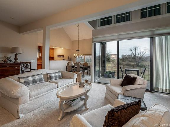 Sparking contemporary unit at The Barns with high ceilings and bright spacious rooms. Dramatic open design with Living Room with fireplace and sliders to large covered deck perfect for summer dining. Nicely laid out kitchen with lots of counter space. 2 primary bedrooms, one on each floor each with full baths and good size closet space. Country setting with beautiful views of acres of open meadow. 2 private garages with great storage. Windows replaced 3 years ago. Trash picked up from your garage.