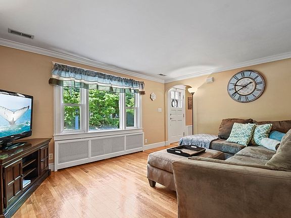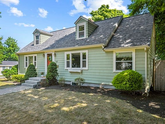 Your search has ended! Located minutes from Central Square Woburn, this updated Cape boasts gleaming hardwood floors, beautiful crown molding & a picture window which brings in afternoon light. Separate dining plus eat in kitchen complete w/ stone countertops & a breakfast bar w/ additional seating. You will love the built ins on the far wall near the French doors that lead to back patio - great place to entertain, relax & soak up the sun! Two bedrooms located on the main level, full bath w/ wainscoting, shower/tub combo, & linen cubby complete level 1. Upstairs you will find the spacious primary bedroom w/ wall-to-wall carpet & a bonus area w/ a large walk-in closet. The basement boasts a large finished family room w/ carpet, recessed lighting, & ample closet space. Partially finished bonus room & a 1/2 bath w/ laundry hookups add to use of this level. The backyard is fenced-in, has an outdoor shed with power. LOADS of PARKING, CENTRAL AC, TANKLESS BOILER and young roof! A MUST SEE!