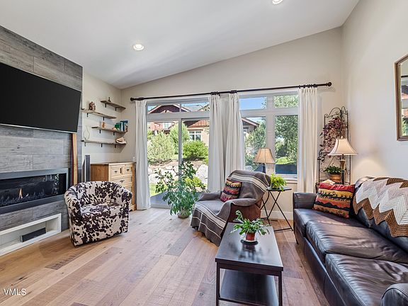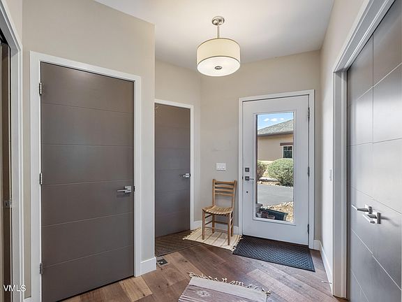 Nestled in The Villas at Cotton Ranch, this pristine three-bedroom home features a main-floor master and is situated beside the scenic Gypsum Creek Golf Course. Boasting luxurious touches throughout, including wide-plank European oak floors and wool carpeting, this residence offers a welcoming den tucked behind elegant French doors. The kitchen is adorned with Spanish Dekton countertops, a Zephyr stovetop hood, modern appliances, and is complemented by a stylish barn door pantry. An open floor plan showcases custom lighting, vaulted ceilings, and a cozy gas fireplace. The master suite on the main floor boasts a custom-built walk-in closet, an oversized tub, a walk-in shower, while the home's two and a half bathrooms feature Travertine tiles and Italian cabinetry. Outside, a spacious low-maintenance Trex deck offers ample space for outdoor dining and summer gatherings. With HOA-maintained exterior and landscaping, upkeep is a breeze. A four-vehicle driveway and a two-car garage complete this home in a prime location.