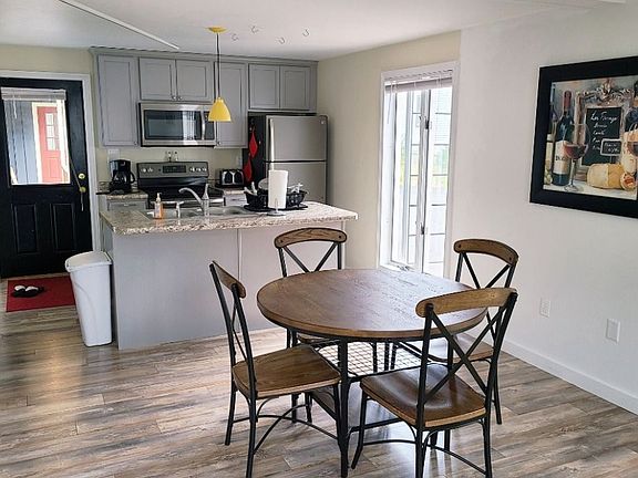2-bedroom fully furnished townhouse, 1,100 sq. ft. Available immediately at 57 Main St., Bethel. The townhouse is part of a 5-unit building that includes two other residential units, a property management company, and a hair salon. The unit has an open-concept kitchen/living/den area, as well as a bathroom and washer/dryer laundry area. Upstairs are two large bedrooms each with ample room for a bureau, chair, small desk and bed. The unit is located on Bethel's main thoroughfare, boasting numerous restaurants, a first-class bakery, as well as a stocked supermarket and the Philbrook Mall - a collection of small and eclectic vendors of consignment and craft products. Ideal for two professionals either working locally or commuting the 30 minutes to South Paris, Bridgton, or Rumford. Excellent references required. One year lease. Rent is $1,750/month. Tenant pays monitor system heat + electricity. $1,750/month. Owner pays plowing/snow removal and WiFi. Tenant pays propane heat + electricity.