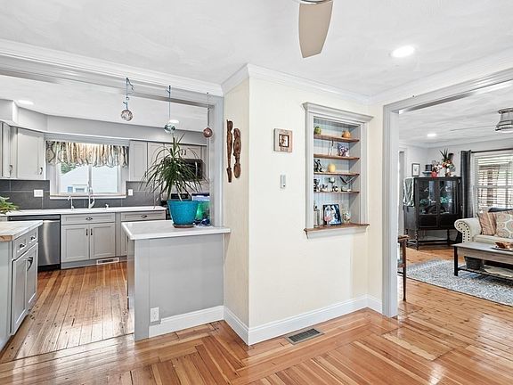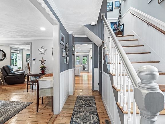 Perfect home, location on quiet side street, convenient to Shaws Plaza and I-95, thoughtfully renovated by master carpenter owner over 4 years, high ceilings, crown moldings, ceiling fans, beautiful lighting, new EZ clean Harvey windows, cordless window treatments included, 2 custom bump out windows with glass shelves, skylight above stairway with knotty pine and crown moldings, renovated bathroom with super shower, Kitchen renovated with seamless Corian countertops, oversized stainless sink, garbage disposal, LG Suite kitchen appliances included, Maytag W&D included on 1st floor, on demand hot water heater, new gas furnace, new central AC, new roof, new vinyl siding with shutters. 3 season enclosed front porch. Backyard oasis with 300 SF composite deck, permanent metal pergola structure, gas piped Napoleon barbecue grill with rotisserie, expansive stamped concrete patio, masonry fire pit with natural gas supply, outdoor lighting, perennials, studio building, shed, basement workshop.