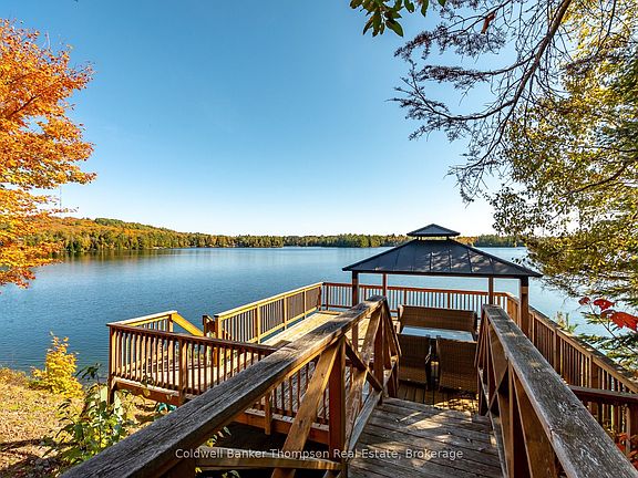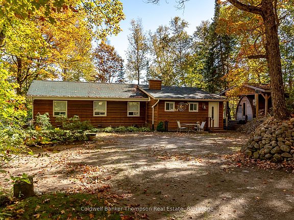 Escape to the timeless charm of cottage life with this 4-bedroom, 4-season bungalow on the clear, sparkling shores of Clear Lake. Set off a year-round, privately maintained road, the tree-canopied driveway sets a peaceful tone as you arrive at this inviting lakeside retreat with ample parking for family and friends. Inside, a spacious foyer welcomes you into a thoughtfully updated interior. The large eat-in kitchen features modern finishes and cozy in-floor heat, ideal for gathering over morning coffee or evening meals. A generous living room offers views of the water, perfect for curling up with a book or enjoying time together after a day outdoors. The updated 4-piece bathroom also features in-floor heating, and four cozy bedrooms provide restful spaces for both family and guests. A laundry/utility room combo adds convenience for longer stays or year-round use. Outside, the level portion of the lot is ideal for lawn games, kids playing, or simply relaxing in nature. Down a few stairs, a small greenhouse offers a space for gardening or quiet reflection. A few more steps lead to a sun deck above the single-slip boat house, perfect for lounging with a drink or soaking up the all-day southern exposure. Just below, the dock offers easy access to the crystal-clear water for swimming, paddling, or casting a line. In the winter, enjoy direct access to the snowmobile trail that runs across the lake, offering a whole new season of fun and adventure.This property is designed for memory-making: sauna sessions after a swim, late-night stargazing, fireside chats, and the simple pleasures of life at the lake. Features include a forced air propane furnace, central air, hot water on demand, a drilled well, and a Generac generator. A nearby public boat launch makes it easy to get your boat in the water, and Novar is just a quick drive for gas, groceries, and the LCBO. If you're looking for a peaceful getaway, this Clear Lake gem offers the lifestyle you've been dreaming of.